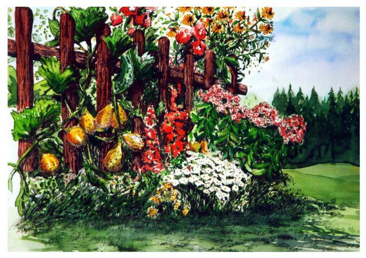 Keywords: watercolour painting summer flowers garden
