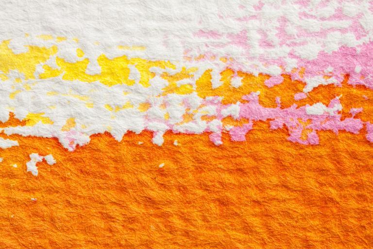 Keywords: watercolour painting technique soluble in water not opaque color image color sketch yellow pink spring orange serene fund background course handmade paper macro
