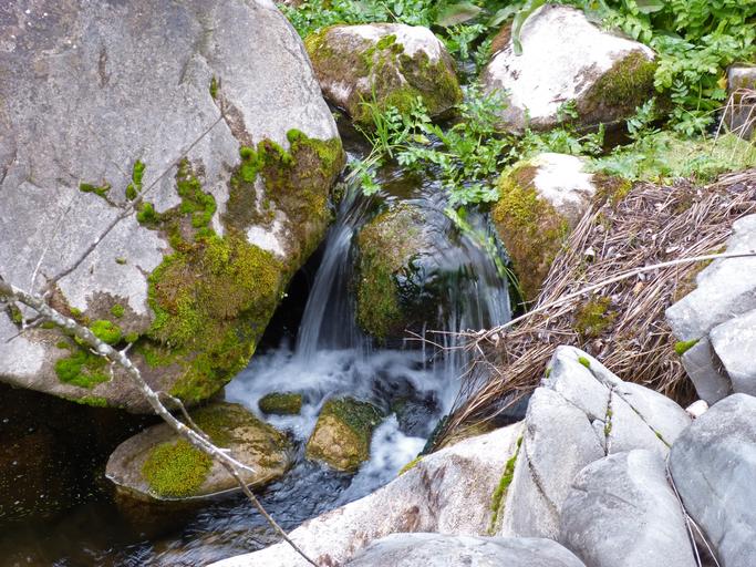 Keywords: waterfall river running water rocks moss