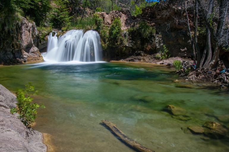 Keywords: arizona camp verde campverde coconino national forest coconinonationalforest forest service forestservice fossil creek fossilcreek k20d national forest nationalforest pentax k20d pentaxk20d red rock ranger district redrockrangerdistrict tonto national forest tontonationalforest usfs verde valley verdevalley waterfall trail waterfalltrail canyon creek desert forest hiking ndfilter outdoors riparian spring springtime trail water waterfall united states unitedstates outdoor landscape watercourse This large, natural waterfall on Fossil Creek is the destination of an easy, one mile hike on Waterfall Trail. A large, deep pool at the base of the fall is a popular swimming hole. Fossil Creek produces 20,000 gallons of water a minute from a series of springs at the bottom of a 1,600 foot deep canyon. This permanent water source has created a stunningly beautiful, green riparian zone rich with flora and fauna at the bottom of this arid canyon in Arizona's high desert. Travertine deposits encase whatever happens to fall into the streambed, forming the fossils for which the area is named. These deposits create deep pools along the length of the creek, providing opportunities to find more secluded swimming holes than the popular pool at the waterfall. Fossil Creek is one of two "Wild and Scenic" rivers in Arizona. This designation was achieved when the Irving power plant was decommissioned, and removal of flume and dam on the creek allowed the creek to flow free. Increasing popularity has led to the Coconino and Tonto National Forests to implement a parking permit reservation system in 2016. Reserved parking permits allow visitors to have a parking spot available in their chosen parking lot. Many visitors drive two or three hours to get to the creek. The final descent to the creek at the bottom of a canyon is on an extremely rough, rocky jeep road. In prior years, the area would often be closed to entry when it reached capacity, and potential visitors would be turned away after the long, difficult drive. Photo by Deborah Lee Soltesz, May 12, 2016. For trail and recreation information, see Fossil Creek, Fossil Springs Wilderness, and the Coconino National Forest. This large, natural waterfall on Fossil Creek is the destination of an easy, one mile hike on Waterfall Trail. A large, deep pool at the base of the fall is a popular swimming hole. Fossil Creek produces 20,000 gallons of water a minute from a series of springs at the bottom of a 1,600 foot deep canyon. This permanent water source has created a stunningly beautiful, green riparian zone rich with flora and fauna at the bottom of this arid canyon in Arizona's high desert. Travertine deposits encase whatever happens to fall into the streambed, forming the fossils for which the area is named. These deposits create deep pools along the length of the creek, providing opportunities to find more secluded swimming holes than the popular pool at the waterfall. Fossil Creek is one of two "Wild and Scenic" rivers in Arizona. This designation was achieved when the Irving power plant was decommissioned, and removal of flume and dam on the creek allowed the creek to flow free. Increasing popularity has led to the Coconino and Tonto National Forests to implement a parking permit reservation system in 2016. Reserved parking permits allow visitors to have a parking spot available in their chosen parking lot. Many visitors drive two or three hours to get to the creek. The final descent to the creek at the bottom of a canyon is on an extremely rough, rocky jeep road. In prior years, the area would often be closed to entry when it reached capacity, and potential visitors would be turned away after the long, difficult drive. Photo by Deborah Lee Soltesz, May 12, 2016. For trail and recreation information, see Fossil Creek, Fossil Springs Wilderness, and the Coconino National Forest.