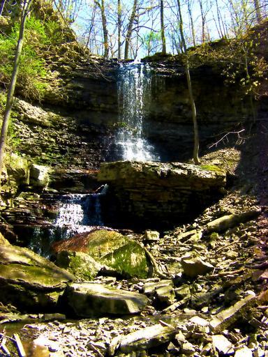 Keywords: waterfall water fall stream cascade flowing scenic nature green woods forest scenery peaceful splash fluid foliage lush pond environment jungle moss rocks