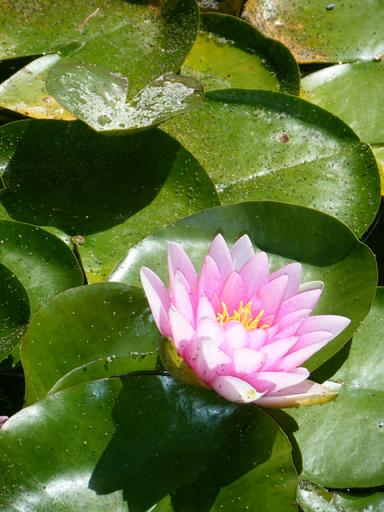 Keywords: waterlily lily lily pad green pink flower shadow blossom nature color botany flourish