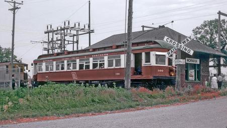 Keywords: outdoor vehicle railroad train locomotive Roger Puta with his camera was in Iowa the weekend of June 22 and 23 1963. The Iowa Chapter of the NRHS was throwing a multi electric car event. In this photo WCF&N 100 had just arrived at the Monrovia, IA station of the Southern Iowa Ry. Note Cross bucks in foreground; freight motor, and substation to left. Roger Puta with his camera was in Iowa the weekend of June 22 and 23 1963. The Iowa Chapter of the NRHS was throwing a multi electric car event. In this photo WCF&N 100 had just arrived at the Monrovia, IA station of the Southern Iowa Ry. Note Cross bucks in foreground; freight motor, and substation to left. Roger Puta with his camera was in Iowa the weekend of June 22 and 23 1963. The Iowa Chapter of the NRHS was throwing a multi electric car event.