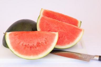Keywords: watermelon melon juicy fruit food delicious eat healthy pulp vitamins refreshment ripe section bless you red green knife mirroring