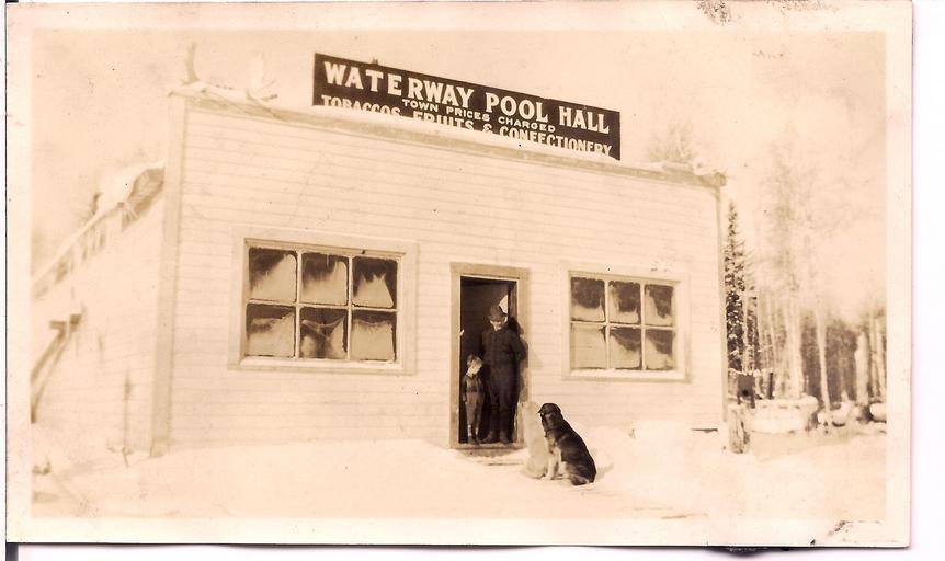 | Keywords: waterways alberta pool hall poolhall Charles Eymundson and his dog in the doorway. Waterways, Alberta, ca. 1910s. From the Charles Eymundson fonds, PR2012.0927/520. Charles Eymundson and his dog in the doorway. Waterways, Alberta, ca. 1910s. From the Charles Eymundson fonds, PR2012.0927/520. |