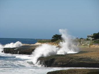 Keywords: waves crashing beach ocean splash splashing coast stormy coastline motion dramatic water santa cruz tide coastal foam wave crash powerful