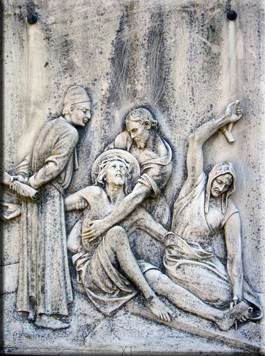 Keywords: way of the cross christian church easter procession stone chiseled crucifixion plate sicily suffering christ