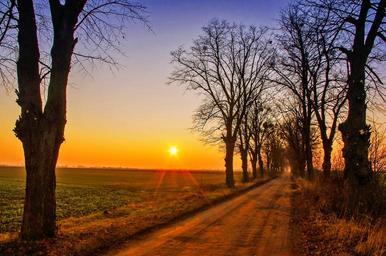 Keywords: way sunset the rays landscape the sun rays of the sun west aura grass twilight scenery tree light nature poland