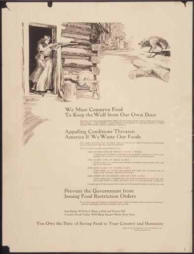 | Keywords: "We Must conserve Food To Keep the Wolf from our Own Door...Appalling Conditions Threaten America If We Waste Our Foods. - NARA - 512559.tif  Local identifier 4-P-120 U S Food Administration Educational Division Advertising Section 01/15/1918 - 01/1919 Still Picture Records Section Special Media Archives Services Division NWCS-S National Archives at College Park 8601 Adelphi Road College Park MD 20740-6001 other date circa 1917 1919 Record group Record Group 4 Records of the U S Food Administration 1917 - 1920 Record group ARC 333 World War I Posters compiled 1917 - 1919 Series ARC 512439 Variant control numbers NAIL Control Number NWDNS-4-P-120 General notes Scope and content File unit File unit ARC yes Other versions <gallery> File We_Must_conserve_Food_To_Keep_the_Wolf_from_our_Own_Door Appalling_Conditions_Threaten_America_If_We_Waste_Our_Foods _-_NARA_-_512559 tif TIFF File We_Must_conserve_Food_To_Keep_the_Wolf_from_our_Own_Door Appalling_Conditions_Threaten_America_If_We_Waste_Our_Foods _-_NARA_-_512559 jpg JPG </gallery> NARA-cooperation PD-USGov Illustrations of wolves Log cabins in the United States Mother and child in art Females with firearms Log cabins in art USFA WWI food waste avoidance campaign NARA TIF images with categorized JPGs |