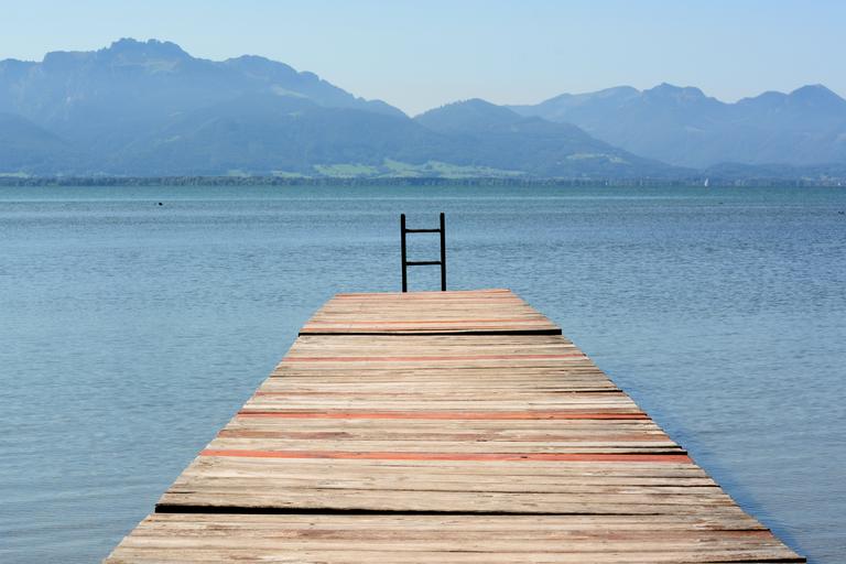 Keywords: web boardwalk chiemsee lake water landscape nature view wooden boards pier jetty atmosphere