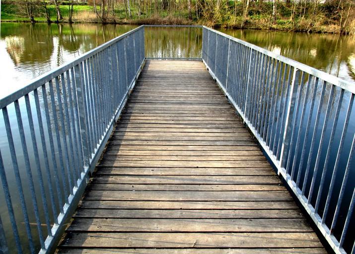 Keywords: web boardwalk railing waters pond metal brickyard pond water spigelung bank amriswil thurgau switzerland