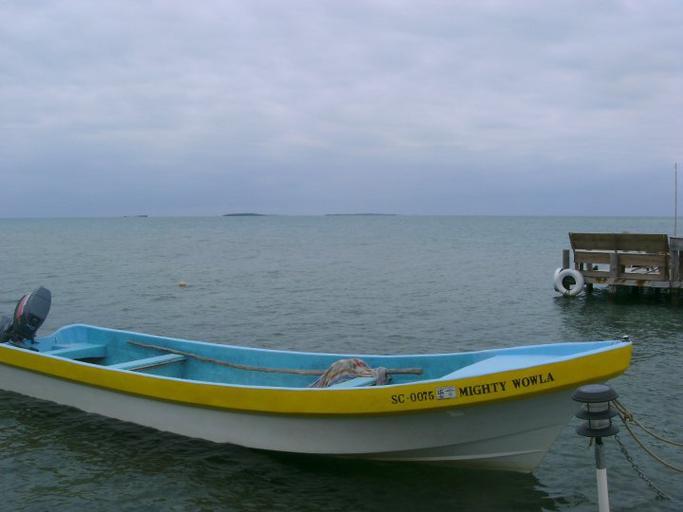 | Keywords: Wee wee caye.jpg en Picture of typical boat used to transport visitors to and from the Wee Wee Caye Marine Lab station located in Belize Limited view of surrounding waters along with primary dock used on the island own Roundhere44 2010-04-17 Taken on a college travel study trip to Belize Boats in Belize |