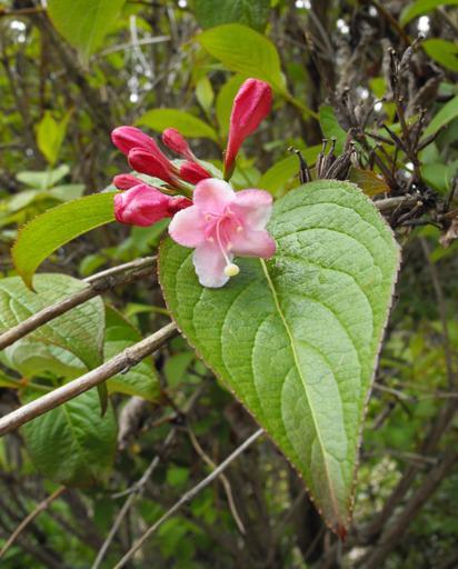 Keywords: Weigelahortensis1.jpg en Weigela hortensis at the UC Berkeley Botanical Garden California USA Identified by sign own Stickpen 2010-03-31 public domain Weigela × hybrida