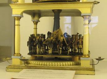 | Keywords: Weihnachtspyramide Christmas pyramid from about 1830 5.jpg en Old Christmas pyramid from about 1830 - first half of the 19 century to be seen in the neo-classical architecture This is the lowermost part of the pyramid Parade of miners of the Ore Mountains in their special uniforms for parades The wish Glück auf good luck back means the hope to come back home safely from the underground mining The figures have a size of about 15 to 18 centimetre - From Germany Ore Mountains Ore Mountain folk art crafted at Schoenheide in the Ore Mountains Now to be seen in the Brush- and Regional Museum at Schoenheide/Saxony de Weihnachtspyramide aus Schönheide im Erzgebirge ausgestellt im Schönheider Bürsten- und Heimatmuseum “ Unterste Etage mit einer Bergparade Bergaufzug Bergleute in Paradeuniform Text der Beschriftung im Museum um 1830 gehört zu den ältesten erhaltenen Pyramiden des Erzgebirges Ca 60 geschnitzte Figuren Erste Etage Bergaufzug und Handwerker Zweite Etage Darstellung der biblischen Weihnachtsgeschichte Maria und Josef auf der Flucht nach Ägypten Engel Soldaten Schriftgelehrter ¦ 3 Etage Paradiesgärtlein mit Adam und Eva Baum mit Schlange exotischen Tieren Der 24 Dezember galt lange Zeit als Adam-und-Eva-Tag žDer klassische Drehturm aus Schönheide mit seiner Barockbekrönung mag auf die Zeit um 1830 zurückgehen Adolf Spamer Deutsche Volkskunst Sachsen Weimar 1954 žÃ„lteste geschnitzte Figuren des Bergaufzugs sind auf Pyramiden aus der ersten Hälfte des vergangenen Jahrhunderts gemeint ist das 19 Jahrhundert erhalten Claus Leichsenring Erzgebirgische Weihnachtspyramiden Dresden 1993 Seite 51 unter Hinweis auf die Abbildung der Schönheider Pyramide in dieser Veröffentlichung auf Seite 44 own Klaaschwotzer Christmas pyramids in Germany Ore Mountain folk art Christmas pyramid from about 1830 Cc-zero |