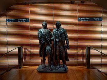 Keywords: weimar schiller goethe theatre square monument double statue statue art artwork museum