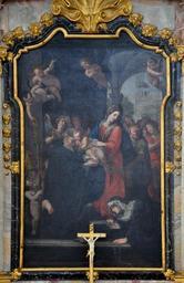 | Keywords: Weingarten Benediktsaltar Altarblatt.jpg Weingarten Württemberg Basilika St Martin und Oswald Heiligenaltäre in den Seitenschiffen <br />Benediktsaltar mit Altarblatt žSt Benedikt St Scholastika und die Muttergottes von Giulio Benso own own photograph 2011-03 Giulio Benso Photo Andreas Praefcke Altars in Basilika St Martin Weingarten Giulio Benso Paintings of Benedict of Nursia Saint Scholastica Photos by User AndreasPraefcke | ||||