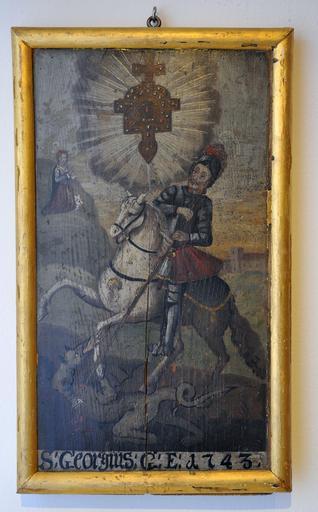 | Keywords: Weingarten Hoftafel St-Georgshof.jpg Hoftafel des St Georgshofs Der Hauspatron beim Drachenkampf darüber das Heilig-Blut-Reliquiar Ölgemälde 1743; mit den Initialen des Lehnsnehmers Georg Eggert <br />Stadtmuseum Weingarten im Schlössle ; aus der Benediktinerabtei Weingarten own own photograph 1743 Photo Andreas Praefcke Stadtmuseum Weingarten 1743 paintings Paintings of Saint George and the Dragon Devotion to the Holy Blood at Weingarten Photos by User AndreasPraefcke | ||||