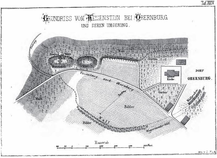Keywords: Weisenstein bei obernburg Grundriss.png Ehemalige Obere Burg Itter auf dem Weisenstein beim Dorf Obernburg Grundriss-Skizze um 1850 C F Günther Bilder aus der Hessischen Vorzeit Darmstadt 1853 Verlag Hofbuchhandlung G Jonghaus S 375f Tafel XXIV http //books google de/books id JG4AAAAAcAAJ pg PA475 Googlebooks 1853 C Plock PD-old Vöhl |