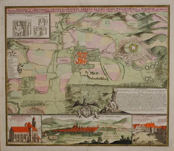 | Keywords: Weissenburg im Nordgau Prospect und Grundriss.jpg Accurater Prospect u Grundris der Gegend der Kayserl Freyen Reichs Stadt Weissenburg am Nordgau Kupferstich bei Johann Baptist Homann Erben um 1725 http //www steutzger biz ca 1725 heirs of Creator Johann Baptist Homann Author died more than 70 years ago - public domain thumb none PD-old-100 History of Weißenburg in Bayern 1725 Homann-Karte Maps by Homannsche Erben Weissenburg Images from Antiquariat Steutzger Weißenburg in Bayern in art |