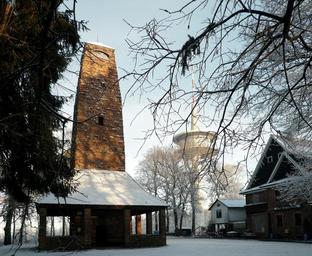Keywords: WeisserStein-RZ.jpg en On Weisser Stein a mountain north of Heidelberg Own Ramessos 2008-12 thumb left Aussichtsturm Weißer Stein