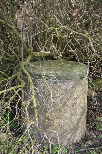 Keywords: well old overgrown abandoned above ground branches covered cement water supply old house