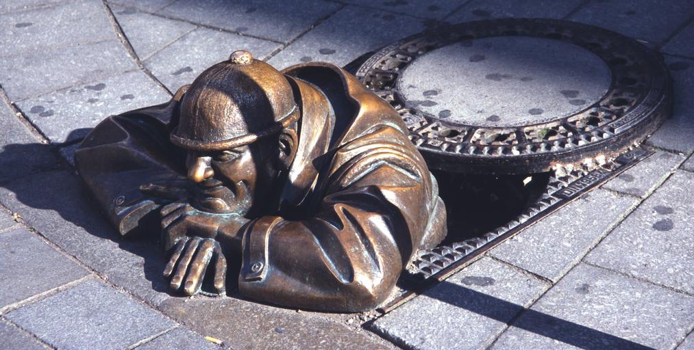 Keywords: well work employee look on lid sewer