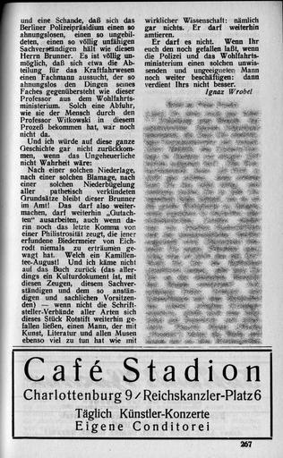 Keywords: Weltbuehne 1922 II 267.jpg Weltbuehne_1922_ jpg II_266 II_268 Die Weltbühne Jahrgang 18 own scan 1922 Creator Kurt Tucholsky De Wikisource book leaflet Kurt Tucholsky Weltbühne Advertisements in Germany 1922 advertisements PD-old