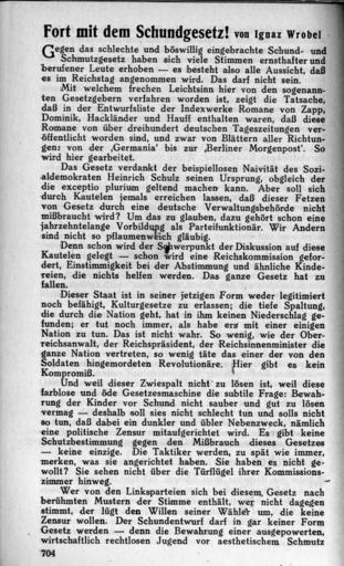 Keywords: Weltbuehne 1926 II 704.jpg Weltbuehne_1926_ jpg II_703 II_705 Die Weltbühne Jahrgang 22 own scan 1926 Creator Kurt Tucholsky De Wikisource book leaflet Kurt Tucholsky Weltbühne PD-old