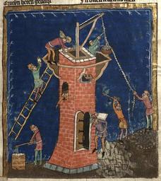 | Keywords: Weltchronik Fulda Aa88 016r detail.jpg  Rudolf von Ems Weltchronik Böhmen Prag 3 Viertel 14 Jahrhundert Hochschul- und Landesbibliothek Fulda Aa 88 Bildbeschreibung nach http //www univie ac at/paecht-archiv-wien/DissertationRoland/06Fulda pdf Martin Roland <br /> Miniatur 10 16r Turmbau zu Babel http //fuldig hs-fulda de/viewer/resolver urn urn 3Anbn 3Ade 3Ahebis 3A66 3Afuldig-1925730 Hochschul- und Landesbibliothek Fulda between 1350 1375 anonymous Meister 1 PD-old-100 Weltchronik HLB Fulda Aa 88 Construction of buildings in medieval miniature Tower of Babel in medieval miniature |