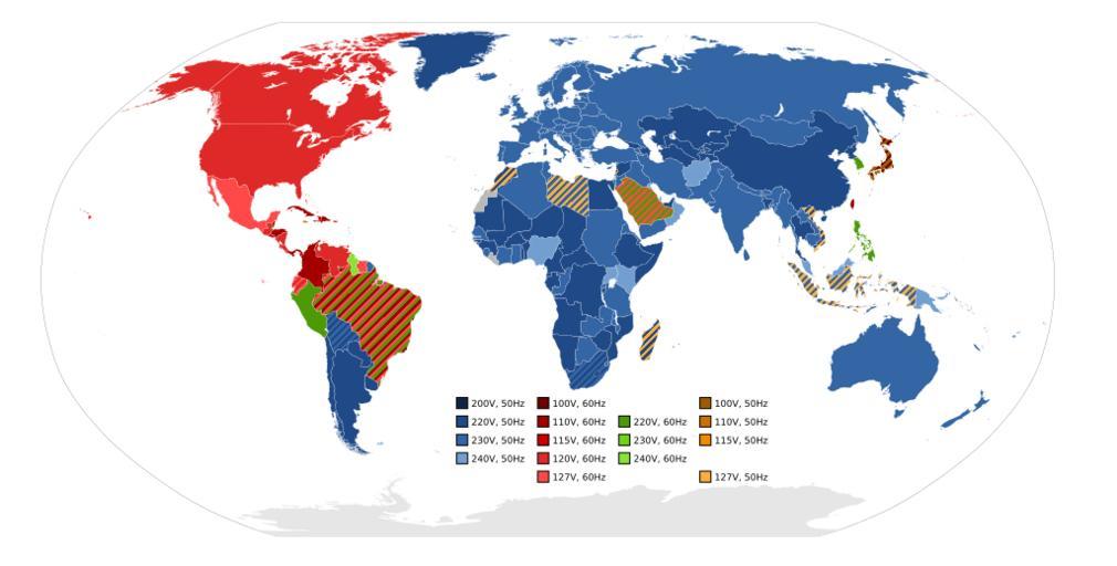 | Keywords: Weltkarte der Netzspannungen und Netzfrequenzen.svg en Countries of the world colored according to their nominal power net voltage and frequency de Länder der Welt eingefärbt entsprechend ihrer nominellen Netzspannungen und Netzfrequenzen pl Kraje świata pokolorowane zgodnie z występującym w nich napięciem sieciowym i częstotliwością ru Ст аны ми а обозначенные цветом в соответствии с используемыми в них номинальным элект ическим нап яжением и частотой тока uk К аїни світу зафа бовані залежно від станда тного івня нап уги ме ежі та частоти BlankMap-World6 svg Based on information from en Mains electricity by country and especially for continental europe de Länderübersicht Steckertypen Netzspannungen und -frequenzen SomnusDe 2009-12-18 Mains connectors Electricity maps Distributional maps of the world SVG maps of the world |