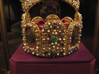 | Keywords: Weltliche Schatzkammer Wien (175).JPG Die Reichskrone Westdeutsch 2 H 10 Jahrhundert; das Kronenkreuz einer Hinzufügung des frühen 11 Jahrhunderts; der Bügel aus der Zeit Kaiser Konrads II 1024-1039 ; die rote Samthaube aus dem 18 Jahrhundert Gold Email Zellenschmelz Edelsteine Perlen Stirnplatte H 14 9 cm B 11 2 cm ; Kronenkreuz H 9 9 cm SK Inv -Nr XIII 1 The Imperial Crown Western Germany 2nd half of the 10th century The cross is an addition from the early 11th century; the arch dates from the reign of Emperor Conrad II ruled 1024-1039 ; the red velvet cap is from the 18th century Gold cloisonné enamel precious stones pearls Brow plate H 14 9 cm W 11 2 cm; cross H 9 9 cm SK Inv No XIII 1 Own 2007-10 MyName Gryffindor part of panorama Weltliche Schatzkammer Wien 176 pano jpg Secular and Ecclesiastical Treasury |
