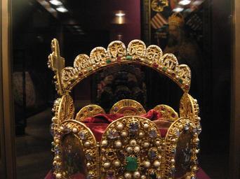| Keywords: Weltliche Schatzkammer Wien (176).JPG Die Reichskrone Westdeutsch 2 H 10 Jahrhundert; das Kronenkreuz einer Hinzufügung des frühen 11 Jahrhunderts; der Bügel aus der Zeit Kaiser Konrads II 1024-1039 ; die rote Samthaube aus dem 18 Jahrhundert Gold Email Zellenschmelz Edelsteine Perlen Stirnplatte H 14 9 cm B 11 2 cm ; Kronenkreuz H 9 9 cm SK Inv -Nr XIII 1 The Imperial Crown Western Germany 2nd half of the 10th century The cross is an addition from the early 11th century; the arch dates from the reign of Emperor Conrad II ruled 1024-1039 ; the red velvet cap is from the 18th century Gold cloisonné enamel precious stones pearls Brow plate H 14 9 cm W 11 2 cm; cross H 9 9 cm SK Inv No XIII 1 Own 2007-10 MyName Gryffindor part of panorama Weltliche Schatzkammer Wien 176 pano jpg Secular and Ecclesiastical Treasury |