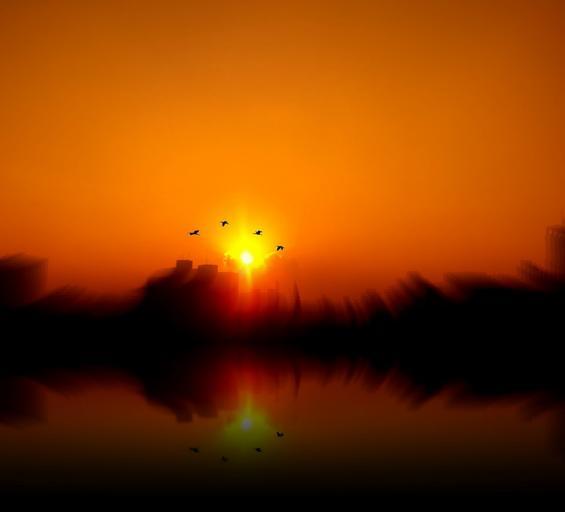 Keywords: west birds sol sunset against light reflection eventide brazil lake urban buildings city end of afternoon vista