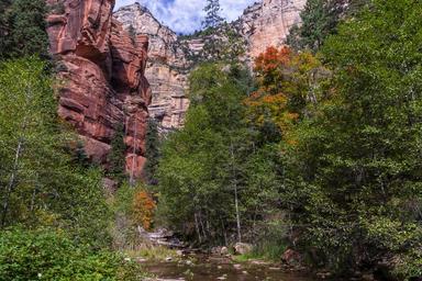 | Keywords: arizona coconino national forest coconinonationalforest forest service forestservice oak creek canyon oakcreekcanyon oak creek canyon vista oakcreekcanyonvista pentax k-1 pentaxk1 red rock ranger district redrockrangerdistrict red rock-secret mountain wilderness redrocksecretmountainwilderness sedona u.s. forest service usforestservice usfs west fork westfork west fork of oak creek canyon westforkofoakcreekcanyon autumn canyon fall fall color fallcolor fall colors fallcolors fall foliage fallfoliage forest hiking outdoors trail wilderness united states unitedstates outdoor The brilliant red, orange, and yellows of changing maple leaves mark the start of fall color in the West Fork of Oak Creek Canyon, October 12, 2016. There are a number of reasons why West Fork is one of the most popular trails on the Coconino National Forest. West Fork is fantastic throughout the year, but in autumn, the canyon is ablaze with color. Red and gold leaves float in clear reflecting pools along the creek, under a canopy of solid color. As for the trail itself, it's an easy stroll, but you do have to cross the stream in a number of places. Usually, that involves negotiating a few strategically placed stepping stones or taking a couple of steps in shallow water. The trail is marked and maintained for the first three miles. It ends at a deep pool in a narrow spot in the canyon. Parking is available at Call of the Canyon picnic site for a fee. This is a special fee site run by a concessionaire. Photo by Deborah Lee Soltesz, October 12, 2016. Credit: Coconino National Forest, U.S. Forest Service. Learn more about the West Fork of Oak Creek Canyon, Trail No. 108, Call of the Canyon picnic site, and the Coconino National Forest. The brilliant red, orange, and yellows of changing maple leaves mark the start of fall color in the West Fork of Oak Creek Canyon, October 12, 2016. There are a number of reasons why West Fork is one of the most popular trails on the Coconino National Forest. West Fork is fantastic throughout the year, but in autumn, the canyon is ablaze with color. Red and gold leaves float in clear reflecting pools along the creek, under a canopy of solid color. As for the trail itself, it's an easy stroll, but you do have to cross the stream in a number of places. Usually, that involves negotiating a few strategically placed stepping stones or taking a couple of steps in shallow water. The trail is marked and maintained for the first three miles. It ends at a deep pool in a narrow spot in the canyon. Parking is available at Call of the Canyon picnic site for a fee. This is a special fee site run by a concessionaire. Photo by Deborah Lee Soltesz, October 12, 2016. Credit: Coconino National Forest, U.S. Forest Service. Learn more about the West Fork of Oak Creek Canyon, Trail No. 108, Call of the Canyon picnic site, and the Coconino National Forest. |