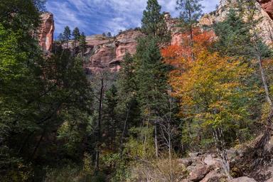 Keywords: arizona coconino national forest coconinonationalforest forest service forestservice oak creek canyon oakcreekcanyon oak creek canyon vista oakcreekcanyonvista pentax k-1 pentaxk1 red rock ranger district redrockrangerdistrict red rock-secret mountain wilderness redrocksecretmountainwilderness sedona u.s. forest service usforestservice usfs west fork westfork west fork of oak creek canyon westforkofoakcreekcanyon autumn canyon fall fall color fallcolor fall colors fallcolors fall foliage fallfoliage forest hiking outdoors trail wilderness united states unitedstates outdoor The brilliant red, orange, and yellows of changing maple leaves mark the start of fall color in the West Fork of Oak Creek Canyon, October 12, 2016. There are a number of reasons why West Fork is one of the most popular trails on the Coconino National Forest. West Fork is fantastic throughout the year, but in autumn, the canyon is ablaze with color. Red and gold leaves float in clear reflecting pools along the creek, under a canopy of solid color. As for the trail itself, it's an easy stroll, but you do have to cross the stream in a number of places. Usually, that involves negotiating a few strategically placed stepping stones or taking a couple of steps in shallow water. The trail is marked and maintained for the first three miles. It ends at a deep pool in a narrow spot in the canyon. Parking is available at Call of the Canyon picnic site for a fee. This is a special fee site run by a concessionaire. Photo by Deborah Lee Soltesz, October 12, 2016. Credit: Coconino National Forest, U.S. Forest Service. Learn more about the West Fork of Oak Creek Canyon, Trail No. 108, Call of the Canyon picnic site, and the Coconino National Forest. The brilliant red, orange, and yellows of changing maple leaves mark the start of fall color in the West Fork of Oak Creek Canyon, October 12, 2016. There are a number of reasons why West Fork is one of the most popular trails on the Coconino National Forest. West Fork is fantastic throughout the year, but in autumn, the canyon is ablaze with color. Red and gold leaves float in clear reflecting pools along the creek, under a canopy of solid color. As for the trail itself, it's an easy stroll, but you do have to cross the stream in a number of places. Usually, that involves negotiating a few strategically placed stepping stones or taking a couple of steps in shallow water. The trail is marked and maintained for the first three miles. It ends at a deep pool in a narrow spot in the canyon. Parking is available at Call of the Canyon picnic site for a fee. This is a special fee site run by a concessionaire. Photo by Deborah Lee Soltesz, October 12, 2016. Credit: Coconino National Forest, U.S. Forest Service. Learn more about the West Fork of Oak Creek Canyon, Trail No. 108, Call of the Canyon picnic site, and the Coconino National Forest. |