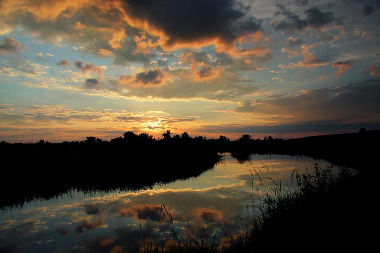 Keywords: west sun sunset sky evening river view landscape clouds colors of the sky orange sky the sun the rays evening sky