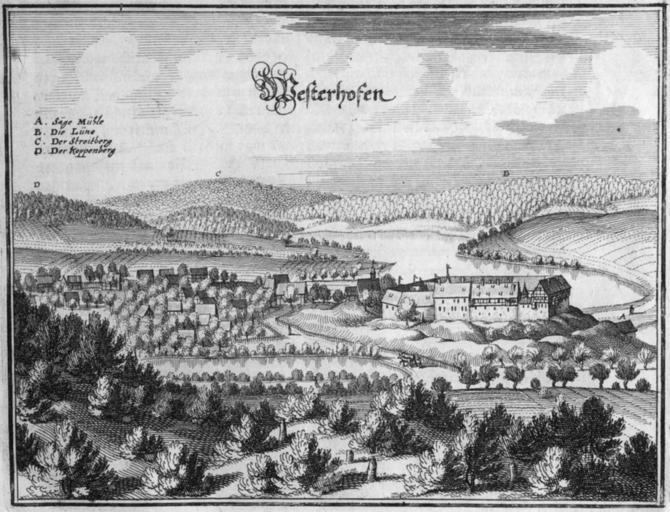 | Keywords: Westerhoven (Merian).jpg Series title 15 1 1654/1658 Franckfurt am Main http //diglib hab de/drucke/6-11-1-geogr-2f/start htm Digitalisat der HAB Wolfenbüttel Braunschweig Lüneburg Merian 003 jpg PD-old Other versions s de Topographia Braunschweig Lüneburg Engravings of Topographia Braunschweig Lüneburg Burg Westerhof |