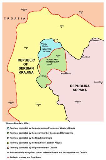 | Keywords: Western Bosnia 1994.png English Map of Western Bosnia 1994 Serbo-Croatian Mapa Zapadne Bosne 1994 godina Map made by PANONIAN PANONIAN en PANONIAN References Map is created according to this source an 1994 UN map http //www srpska-mreza com/MAPS/Ethnic-groups/map-UN-1994 jpg Maps of the War in Bosnia and Herzegovina Maps of the history of the Federation of Bosnia and Herzegovina Maps of the history of Republika Srpska Maps of the Republic of Serbian Krajina Maps of Western Bosnia 1993-1995 Maps of Republika Srpska 1992-1995 Siege of Bihać |