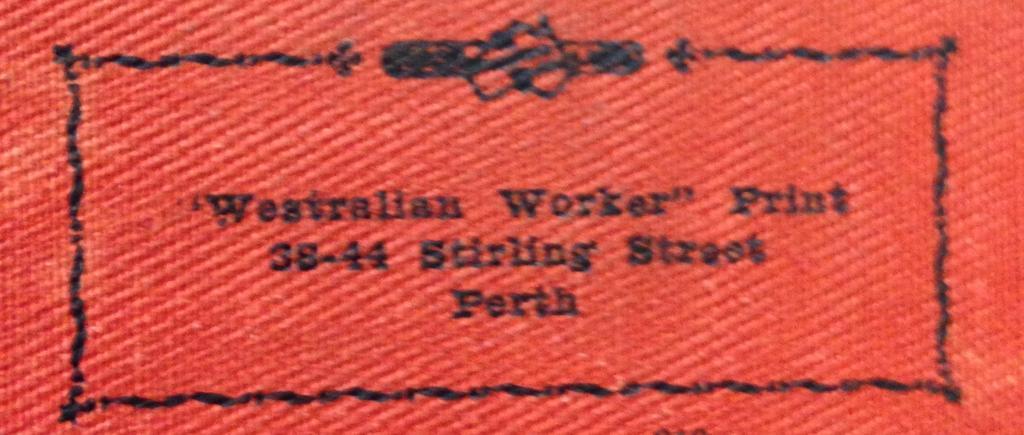 | Keywords: Westralian worker print mark label 01.jpg en w Westralian Worker Print Perth Western Australia printers mark on back of railway union booklet from the 1930's - see also Citation Westralian Worker Collection of miscellaneous political and trade union pamphlets printed by the Westralian Worker press c 1920-1950 1920 Westralian Worker http //trove nla gov au/work/159322133 18 March 2013 2013-02-26 21 18 49 Booklet printed by the Westralian Worker Westralian Worker as printer ceased by 1951 PD-Australia Uploaded with UploadWizard Publishers from Australia Westralian Worker |