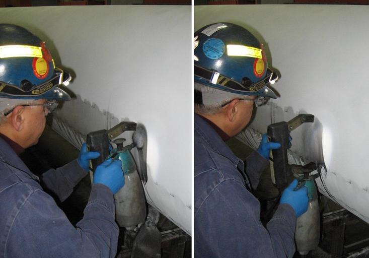 | Keywords: Wet magnetic particle testing on a pipeline.jpg A technician performs magnetic-particle inspection MPI on a pipeline to check for stress corrosion cracking The technique used here involves black particles in a wet suspension sprayed onto a surface prepared with white contrast paint a technique known in the trade as black and white MPI In the left picture the technician is holding a magnetic yoke horseshoe-type electromagnet against the pipe while spraying the liquid onto the magnetized area between the poles In the right picture the technician watches the liquid flow while checking for indications of cracking which would appear as small black lines No indications of cracking appear in this picture; the only marks are the 'footprints' of the magnetic yoke and drip marks In these pictures the pipe is sitting on a steel support in a shop after being removed from service for testing own original text self-made 1 2012-07-10 Davidmack wikipedia en <br/> Licensed under the GFDL by the author; Released under the GNU Free Documentation License Cc-zero GFDL Original upload log en wikipedia Wet_magnetic_particle_testing_on_a_pipeline jpg wikitable - 2012-07-10 16 57 2324×1624× 596586 bytes Davidmack A technician performs magnetic-particle inspection MPI on a pipeline to check for stress corrosion cracking The technique used here involves black particles in a wet suspension sprayed onto Pipelines Men at work Inspection equipment |