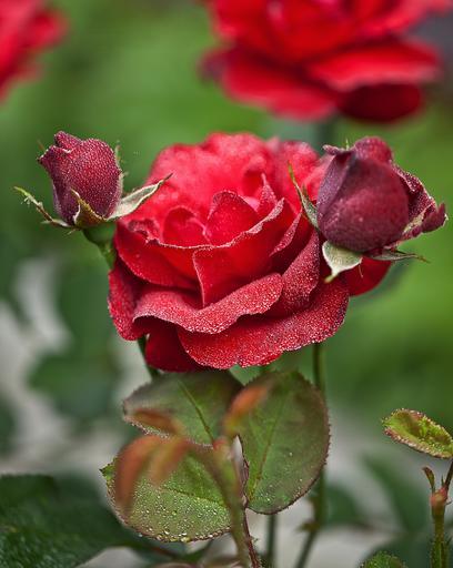| Keywords: wet rose flora flower a flower garden garden a garden plant flowers flower summer plant water rain drops of water the blossoming of full bloom summer the petals the stem the buds red green pąsowy the background sharpness bloom nature closeup colorful foliage the delicacy gentleness clarity spikes |