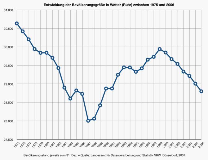 | Keywords: Wetter Population.gif Bevölkerungsstand Wetter Ruhr Statistik 1970-heute png Entwicklung der Einwohnerzahl in Wetter Ruhr zwischen 1975 und 2006 Landesamt für Datenverarbeitung und Statistik NRW Düsseldorf 2007 2007-09-21 Schwelmer Statistics of Wetter Ruhr Temporal population graphs of Ennepe-Ruhr-Kreis |