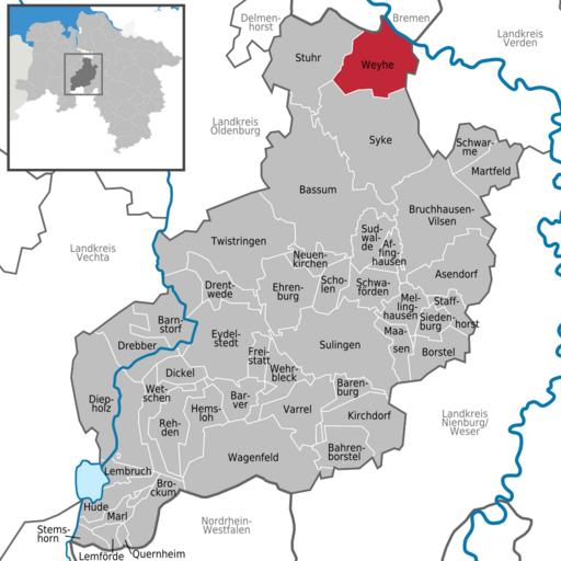 | Keywords: Weyhe in DH.svg DeLocMaps Weyhe Landkreis Diepholz District of Diepholz Diepholz district L'arrondissement de Diepholz Arrondissement de Diepholz Niedersachsen Basse-Saxe Lower Saxony TUBS/Translation own Adobe Illustrator based on File Lower Saxony location map svg NordNordWest http //www geodaten niedersachsen de/master/C17415881_N17416128_L20_D0_I15258844 html Niedersachsen Viewer File Locator map DH in Lower Saxony svg TUBS 2009-07-07 Hagar66 based on work of TUBS <gallery> file Municipalities in DH svg </gallery> TUBS GFDL cc-by-3 0 2 5 2 0 1 0 cc-by-sa-3 0 2 5 2 0 1 0 TUBS/Credits Locator maps of municipalities in Landkreis Diepholz Weyhe |