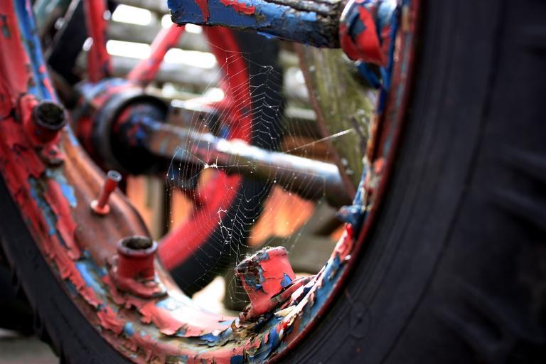 Keywords: wheel cobweb spider webs mature old rusted verwettert