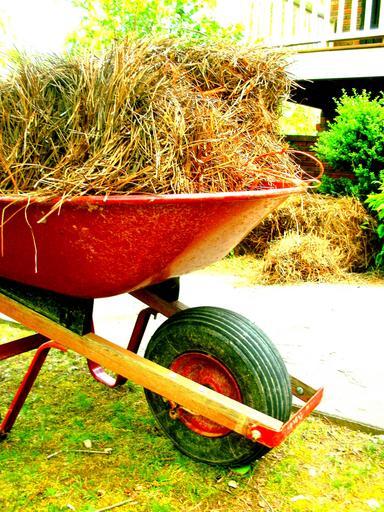 Keywords: wheelbarrow outside outdoor equipment pine straw wheel