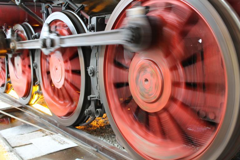 Keywords: wheels train railway steam locomotive loco locomotive zugfahrt speed railways railroad track obsolete traffic dynamics movement red black dynamic history formerly rail traffic rail drive turn rotation