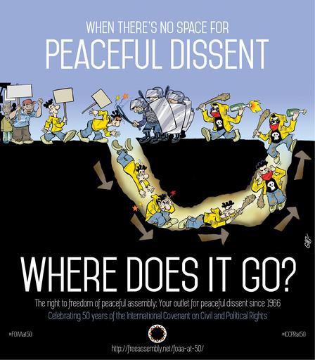 | Keywords: #foaaat50 foaaat50 #iccprat50 iccprat50 peaceful dissent peacefuldissent protest violent extremism violentextremism poster text sign signboard outdoor Marking 50 years of the international rights to freedom of peaceful association: freeassembly.net/foaa-at-50/ Marking 50 years of the international rights to freedom of peaceful association: freeassembly.net/foaa-at-50/ | ||||
