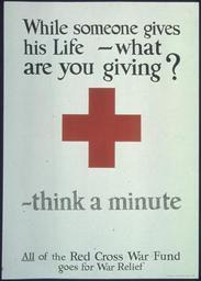 | Keywords: "While someone gives his life- what are you giving- - think a minute. All of the Red Cross War Fund goes for War... - NARA - 512655.tif  Scope and content General notes 512655 Local identifier 4-P-217 U S Food Administration Educational Division Advertising Section 01/15/1918 - 01/1919 Still Picture Records Section Special Media Archives Services Division NWCS-S National Archives at College Park 8601 Adelphi Road College Park MD 20740-6001 other date circa 1917 1919 Record group Record Group 4 Records of the U S Food Administration 1917 - 1920 Record group ARC 333 World War I Posters compiled 1917 - 1919 Series ARC 512439 File unit File unit ARC Variant control numbers NAIL Control Number NWDNS-4-P-217 yes Other versions <gallery> File While_someone_gives_his_life-_what_are_you_giving-_-_think_a_minute _All_of_the_Red_Cross_War_Fund_goes_for_War _-_NARA_-_512655 tif tif File While_someone_gives_his_life-_what_are_you_giving-_-_think_a_minute _All_of_the_Red_Cross_War_Fund_goes_for_War _-_NARA_-_512655 jpg jpg </gallery> NARA-cooperation PD-USGov World War I posters of the United States World War I homefront in the United States International Red Cross and Red Crescent Movement War relief NARA TIF images with categorized JPGs |