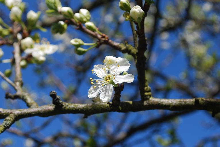 Keywords: white flowering flower spring tree plum trees sky blue greenery nature