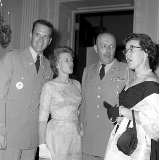 | Keywords: u.s. national archives usnationalarchives jfk presidential library jfkpresidentiallibrary blackandwhite groupshot people monochrome indoor black and white Original Caption: White House Communications Agency Officer, Jack Rubley, and Wife, Bernice Rubley, at White House Military Reception We are looking for your help in identifying unknown people in our White House Photographs collection. If you have any information about this photograph, please post a comment, including any relevant sources, for the catalogers at the John F. Kennedy Presidential Library. Thank you! Local Identifier: JFKWHP-ST-194-17-62 Created By: President (1963-1969 : Johnson). White House Photograph Office. (1963 - 1969) From: Collection JFK-WHP: White House Photographs, 12/19/1960 - 03/11/1964 Contact: John F. Kennedy Library (LP-JFK), Columbia Point Boston, MA 02125-3398 Phone: 617-514-1600 Fax: 617-514-1652 Email: kennedy.library@nara.gov Production Dates: 15 May 1962 Photo Credit: Cecil Stoughton [Harold Sellers]. White House Photographs. John F. Kennedy Presidential Library and Museum, Boston Scope and Content Note: In this photograph, White House Communications Agency (WHCA) officer, Captain Jack Rubley, and his wife, Bernice Rubley (both at left), attend a military reception at the White House. Persons at right are unidentified. State Dining Room, White House, Washington, D.C. [Photograph by Harold Sellers] Persistent URL: JFK Library URL: www.jfklibrary.org/Asset-Viewer/Archives/JFKWHP-ST-194-17... Access Restrictions: Unrestricted Use Restrictions: Unrestricted Original Caption: White House Communications Agency Officer, Jack Rubley, and Wife, Bernice Rubley, at White House Military Reception We are looking for your help in identifying unknown people in our White House Photographs collection. If you have any information about this photograph, please post a comment, including any relevant sources, for the catalogers at the John F. Kennedy Presidential Library. Thank you! Local Identifier: JFKWHP-ST-194-17-62 Created By: President (1963-1969 : Johnson). White House Photograph Office. (1963 - 1969) From: Collection JFK-WHP: White House Photographs, 12/19/1960 - 03/11/1964 Contact: John F. Kennedy Library (LP-JFK), Columbia Point Boston, MA 02125-3398 Phone: 617-514-1600 Fax: 617-514-1652 Email: kennedy.library@nara.gov Production Dates: 15 May 1962 Photo Credit: Cecil Stoughton [Harold Sellers]. White House Photographs. John F. Kennedy Presidential Library and Museum, Boston Scope and Content Note: In this photograph, White House Communications Agency (WHCA) officer, Captain Jack Rubley, and his wife, Bernice Rubley (both at left), attend a military reception at the White House. Persons at right are unidentified. State Dining Room, White House, Washington, D.C. [Photograph by Harold Sellers] Persistent URL: JFK Library URL: www.jfklibrary.org/Asset-Viewer/Archives/JFKWHP-ST-194-17... Access Restrictions: Unrestricted Use Restrictions: Unrestricted |